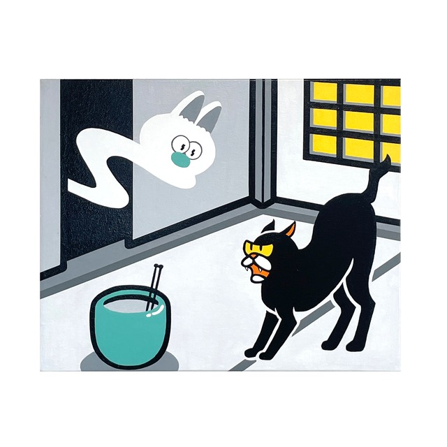 猫とお化け 222×273mm Acrylic on canvas Includes shipping cost.